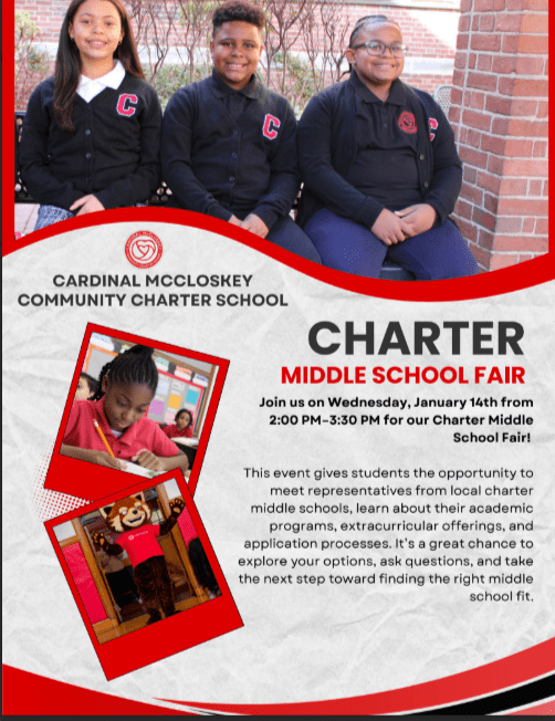 Our Middle School Fair will take place on Wednesday, January 14th, from 2:00 PM – 3:30 PM. This is a valuable opportunity for parents to receive important information directly from participating schools about applications, programs, and deadlines.
